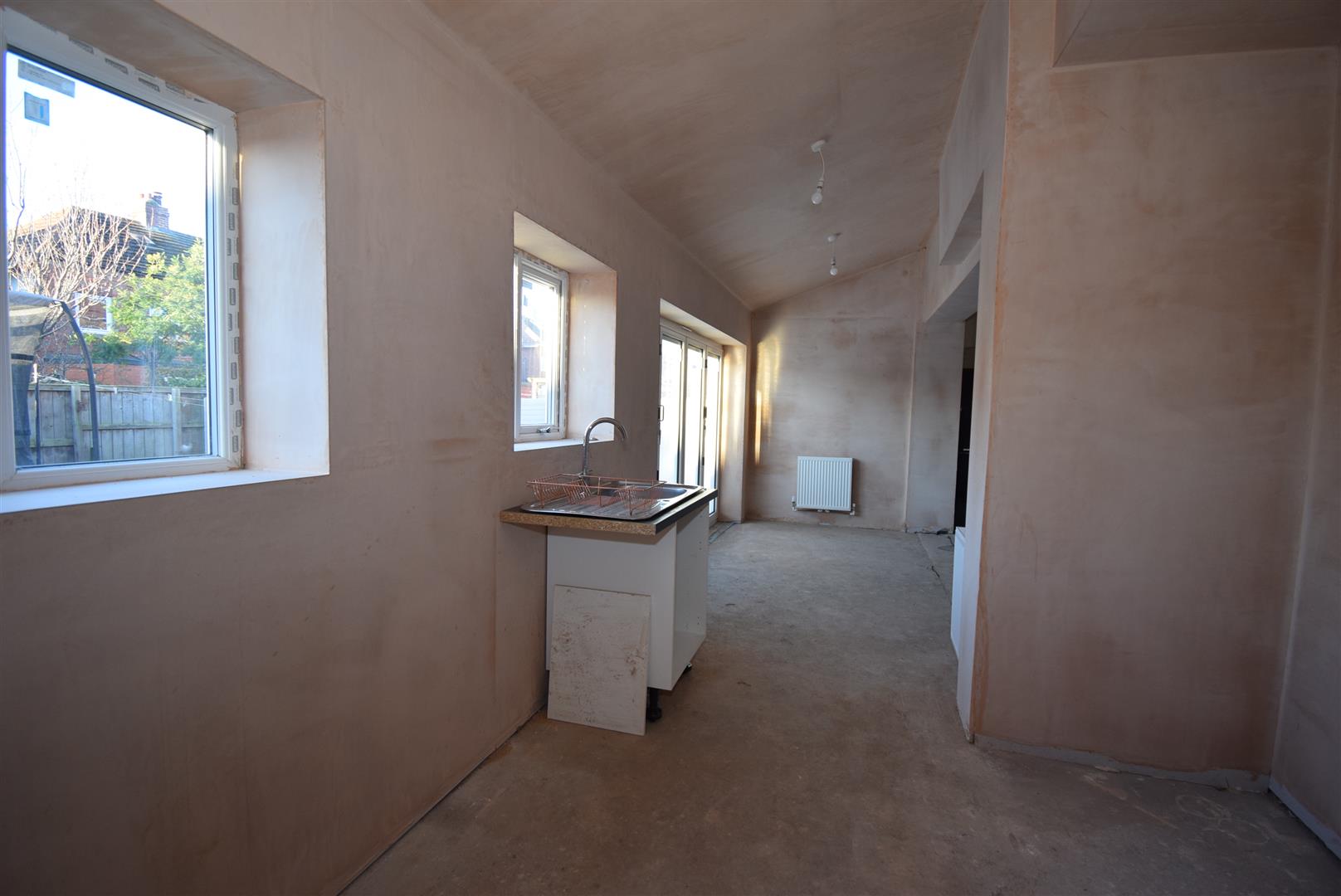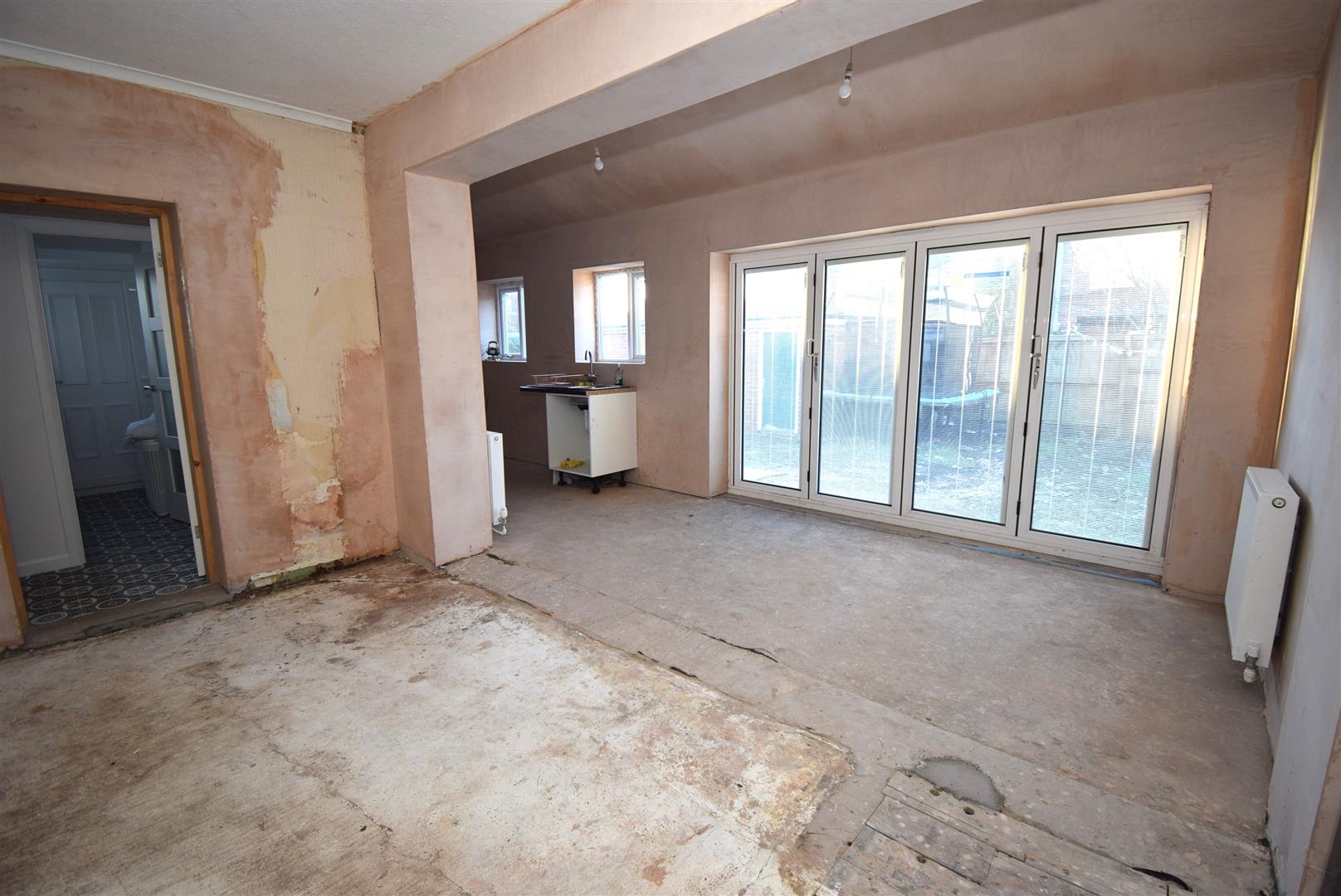 Extended across the rear of the home with bi fold doors, plastered walls and wiring. This versatile room requires full large cosmetic fitting and finishing to the new homeowners specification yet comes with a sink unit and kitchen base unit and two radiators.