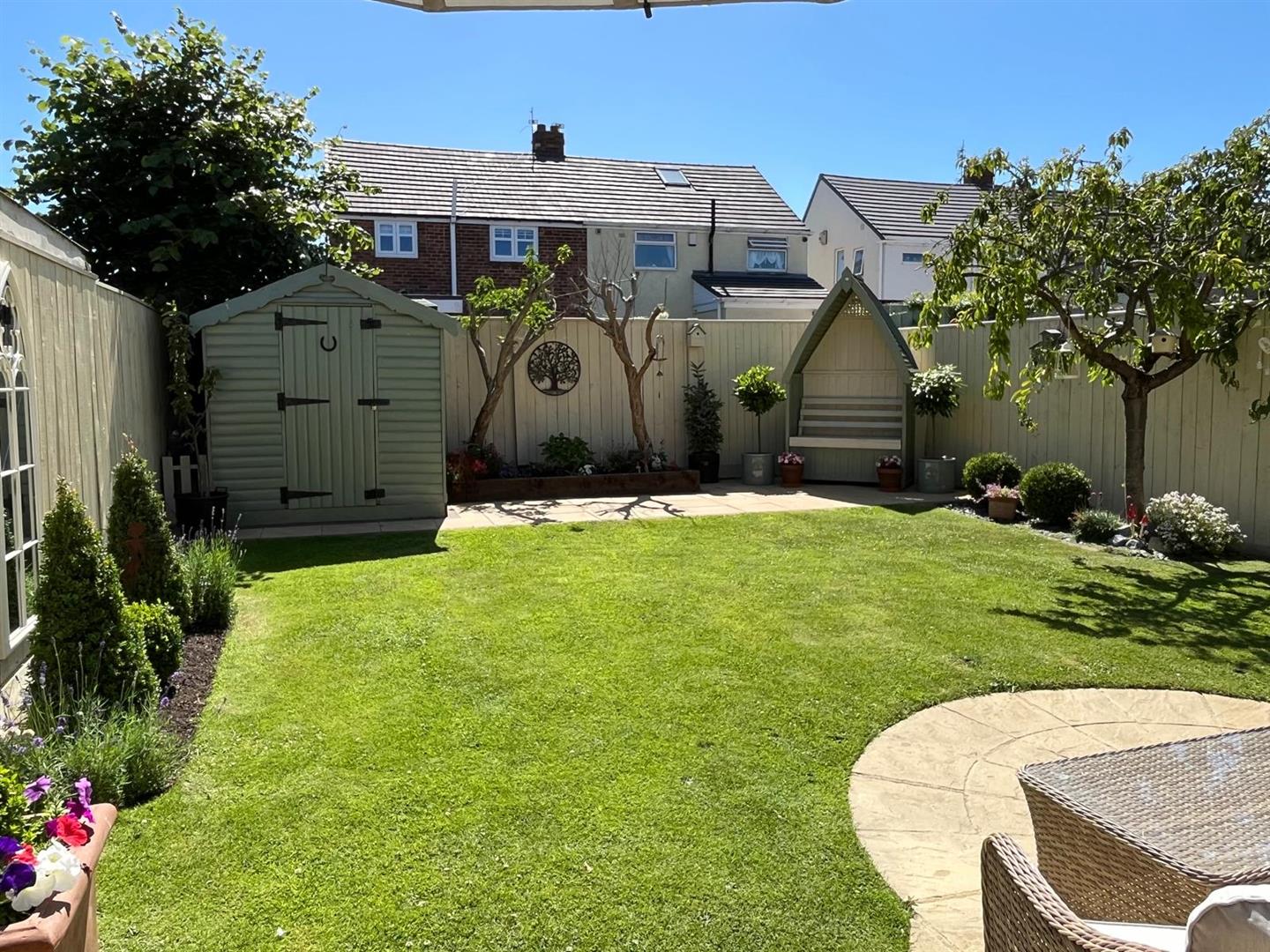 To the front are gardens and a block paved drive for off street parking, there is an EV charging point to the side and a large side storage shed ideal for bikes and garden equipment. The wonderful rear gardens have a glorious south west aspect, are a great size and come with two patio areas