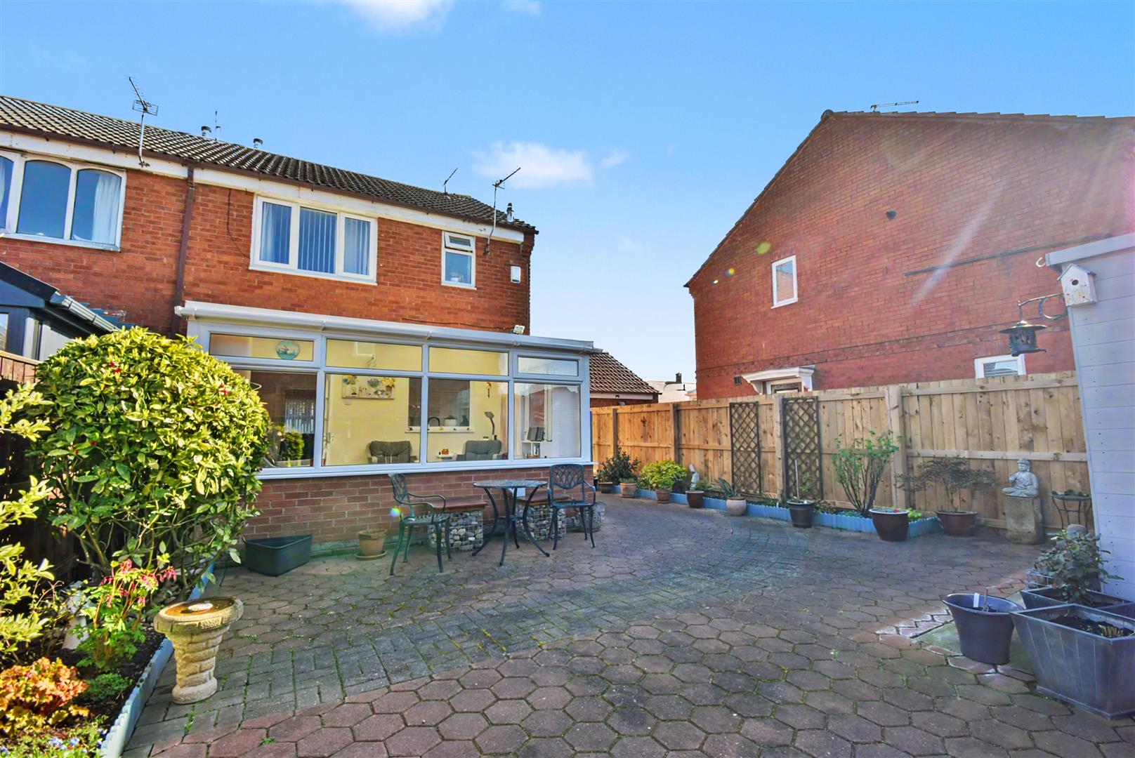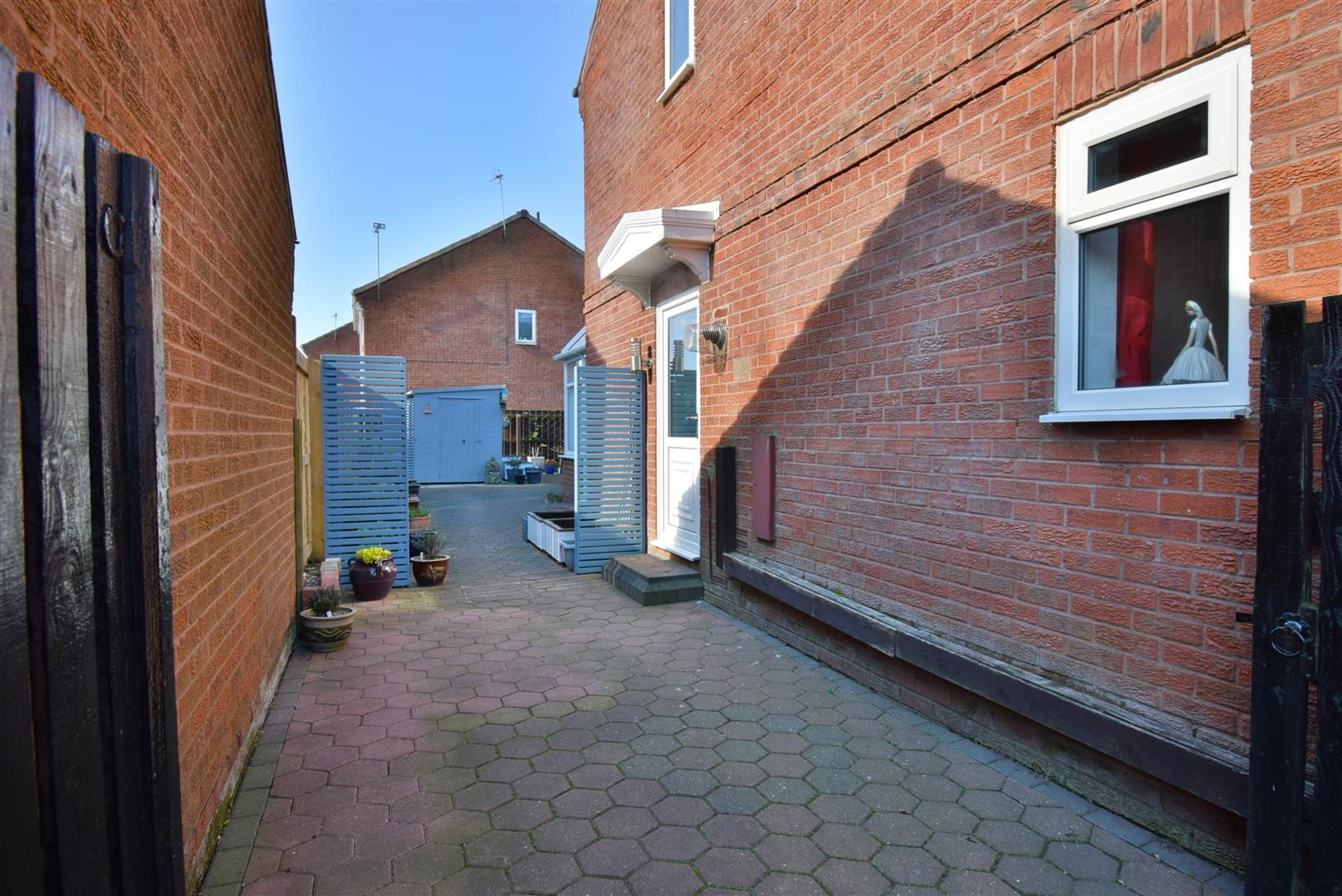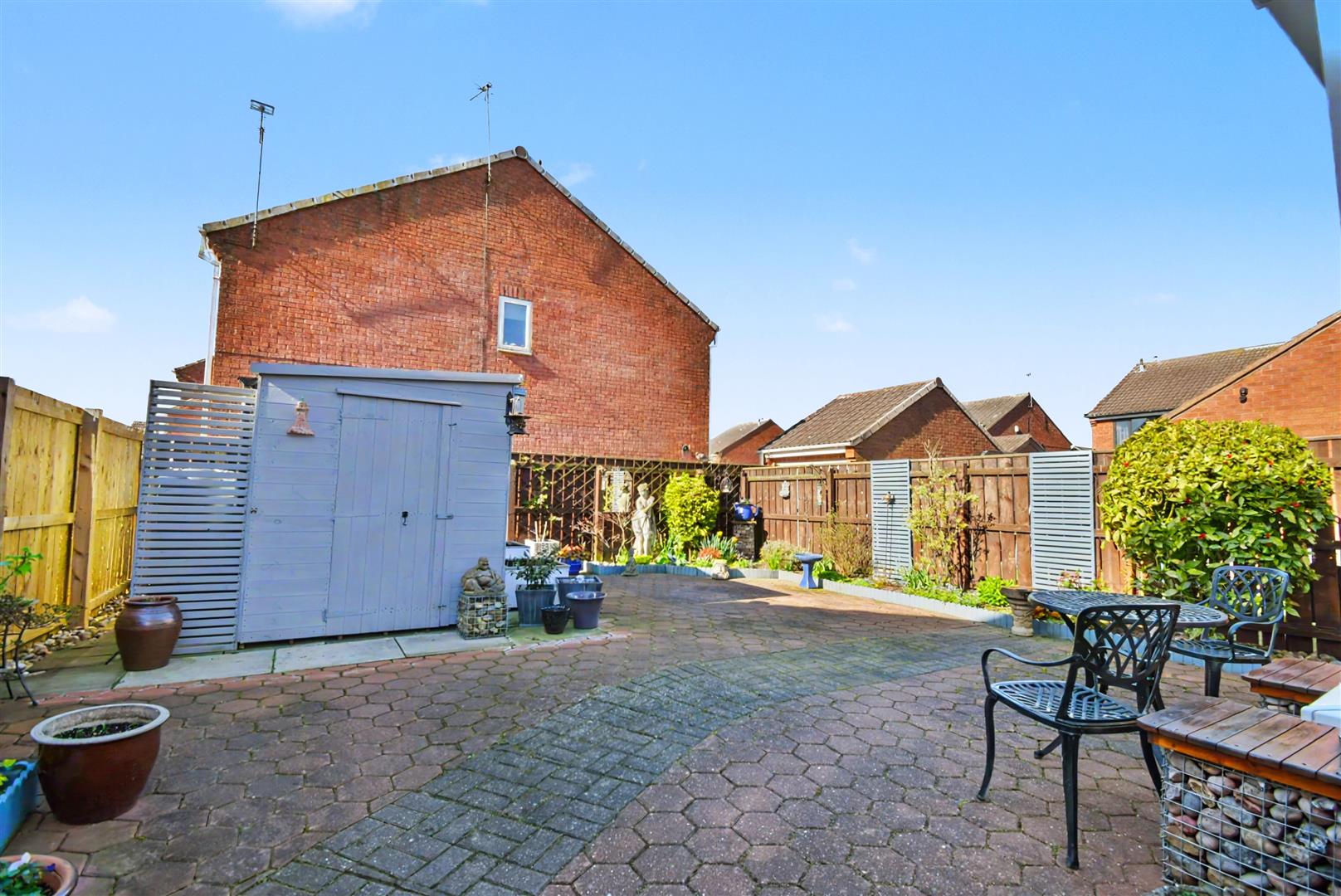 Front lawned garden with planted borders and a block paved drive from front to the side and rear with gates for secure off street parking. The rear gardens are block paved for ease of maintenance, have a great south west aspect, a large shed with power and light. There is an outside tap.